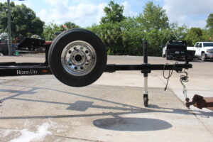 26′ x 9’6″ Ram-Lin Tandem Axle Galvanized Trailer with easy load ramps with rollers, Electric Surge brakes, and 15″ Tires.