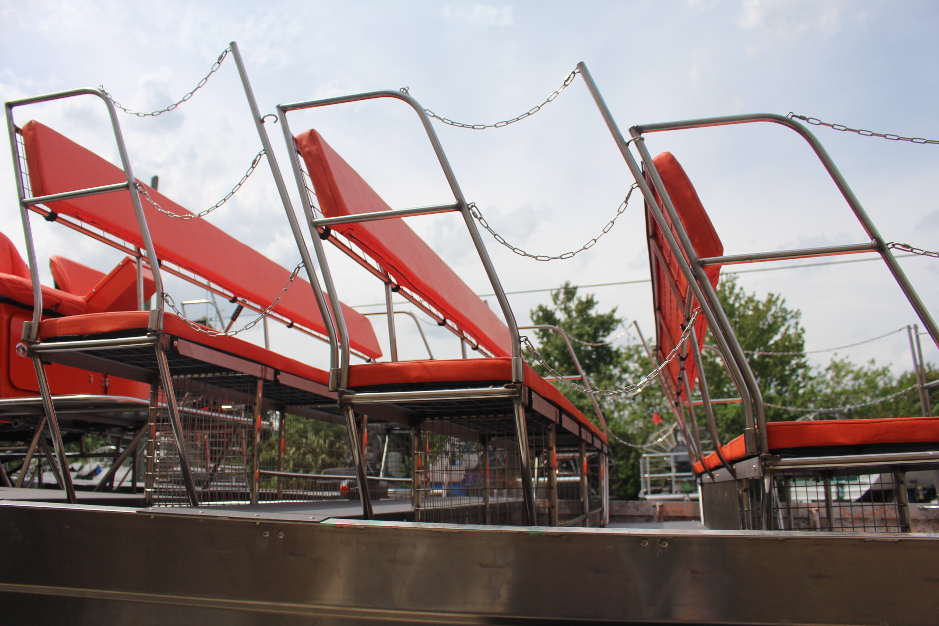 2023 26′ X 9’6″ Diamondback Airboat with a PCM 7.4 LSS Engine, Sensenich 82″ 3 blade Propellor, CH 3 2.3:1 Belt Drive, 3 6 Passenger Bench Seats, 1/4″ Polymer, Safety Chains and handrails for all bench seats, All seat shave rain covers and tote baskets.
